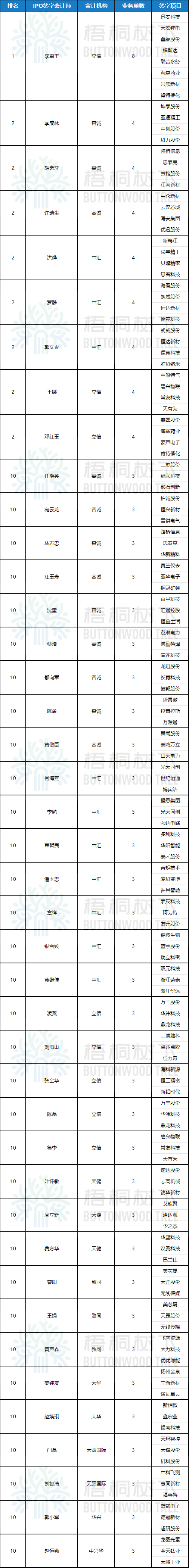 (注:仅统计上市项目量3单及以上的签字会计师)